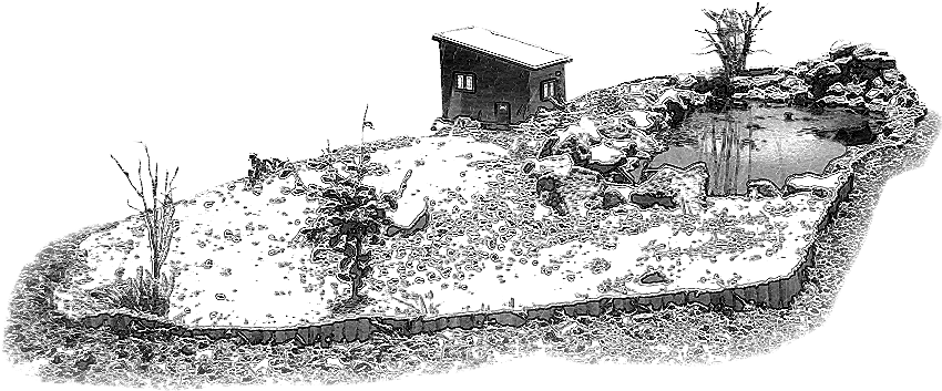 cascade où l’eau filtrée arrivait. Sur un des bords se cachaient la pompe et le filtre dans une cabane en bois avec une bonne isolation phonique. La clarté de l’eau
