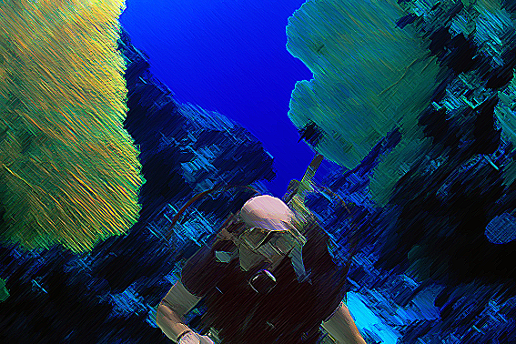 portait sur la manière de porter secours à un plongeur en détresse, partager le détendeur. Et un jour, je ne sais d’où il sortait, je vois un plongeur descendre à la