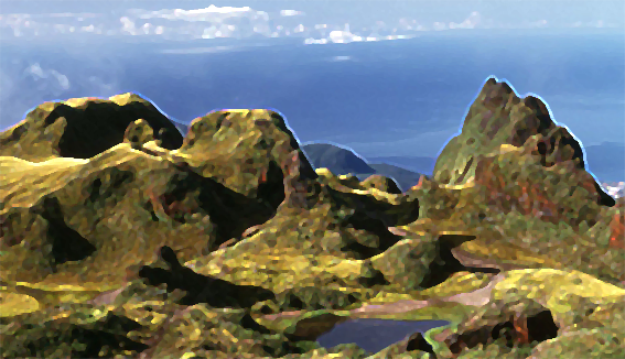 Nous sommes montés à la Soufrière (Volcan en activité) et nous avons pu entrevoir la lave à travers une fosse. Le sol grondait comme une grosse cocote minute. L’odeur du